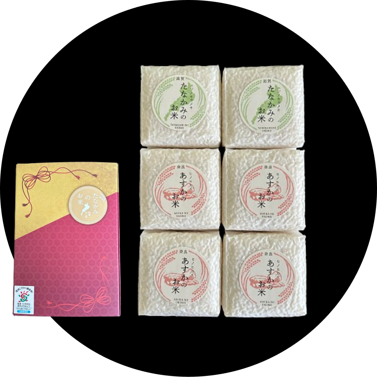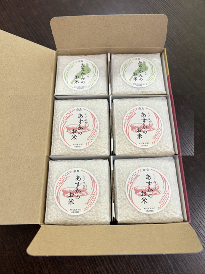 高級感あふれる化粧箱に入れてお届けします ご贈答用は、お米本来のおいしさを保つ真空パックで届きます。お米の酸化を抑制するので、精米したての香りと旨みが楽しめます。このおいしさを是非大切な方へお送りください。 たなかみ米の魅力 水と土にめぐまれた米どころ 琵琶湖の南に位置する田上(たなかみ)。 信楽の山々より流れ着く大戸川の美しい水、かこう岩系の土、盆地特有の寒暖差のある気候にめぐまれた土地で、1300年の間、より美味しくお米を育てる工夫を続けてきました。 100%田上産のコシヒカリ おいしいお米を作るためには、田植え・収穫にとどまりません。 安心でおいしいお米を食べていただけるように、土づくりからスタートし、商品を開発・管理・保管・発送までの全行程を私たち自らおこないます。 美味しいの先にあるもの 田植えを通じた食育、農薬と化学肥料を抑えた特別栽培米などの、環境にも人にもやさしい農業に取り組んでいます。 安心・安全・美味しいお米を届けるだけでなく、その先にあるものを常に考えます。 環境こだわり農産物合言葉は「食べることで、びわ湖を守る。」 滋賀県では、琵琶湖をはじめとした自然環境の保全に配慮した「環境こだわり農業」によるお米づくりが広がっています。集落ぐるみによる「農地・水・環境保全」活動をベースとし、農作物だけではなく、農地や水を守る環境に配慮した栽培方法です。 長谷工あんしんデリは、「環境こだわり農産物」として滋賀県に認証されたお米をより安全・安心な農産物として販売しております。 飛鳥米とにじのきらめき 贈答用キューブ6個(世界遺産登録応援)セット ツイートする シェアする 販売価格 4,400円(税込み) 会員価格 (税込み) 通常価格 4,400円(税込み) 在庫 商品コード B07ZG005 JANコード 数量 - + カートに入れる カテゴリー 贈答用商品 便種 宅急便 ******************************お米は生きていて、常に呼吸をしています! 真空パックにすることにより酸化を抑制してます。鮮度抜群のお米を、毎日食べられる使い切りサイズとなっております。 おすすめ商品 RECOMMENDED ITEMS たなかみ米 真空合掌張り2合 5個セット 3,690円(税込み) たなかみ米 贈答用キューブ6個セット 4,400円(税込み) たなかみ米 贈答用キューブ12個セット 8,760円(税込み) 「たなかみ米」と料亭和久傳の「炙り鶏と根菜の炊き合わせ」のセット 6,460円(税込み)